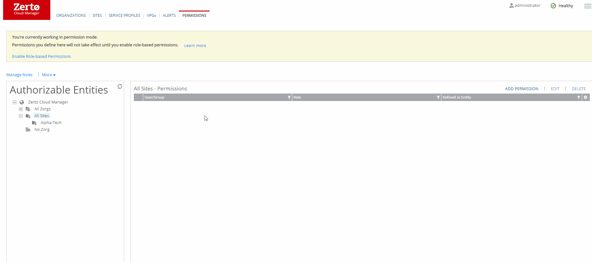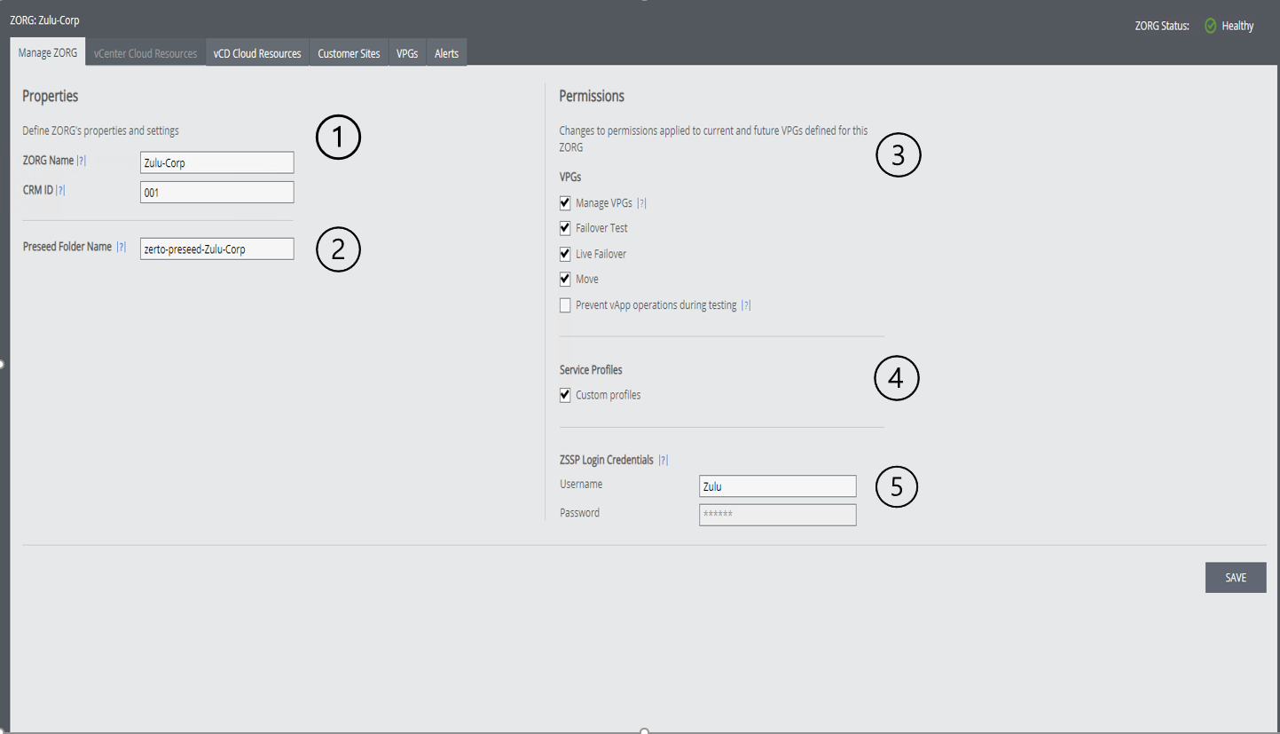 - ZORG – Zerto organisation – Used to define what a single tenant is inside of the Zerto Infrastructure
