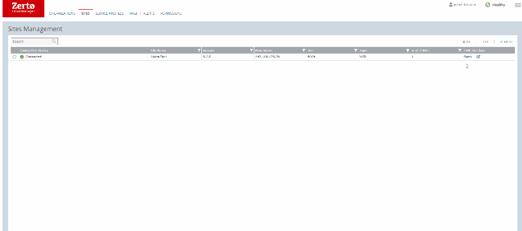 The sites listed under this screen are the Sites directly connected to this ZCM – this does not include DRaaS Customer connected via a ZCC.