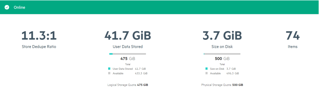 I also think the COmpression ratios i am getting are pretty awesome too! So not am I only saving bandwidth across the network by deduping the data before it’s sent but when it lands im getting decent compression ratios aswell to make sure my LTR copies take up as little space as possible.