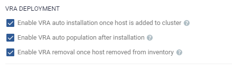 These settings allow Zerto to automatically deploy a VRA when a host is added to a cluster and also automatically remove the VRA when a host is removed from a cluster meaning that these setting will allow Zerto to automatically scale up AND down with your environment.