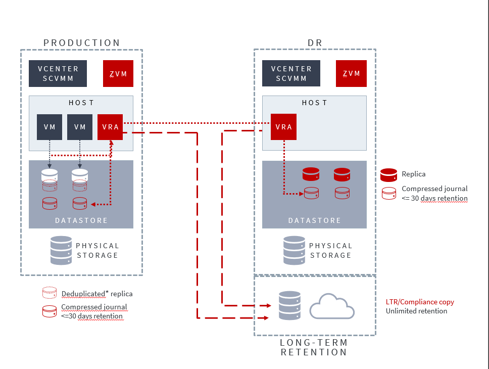 We can see we have 2 major components the Zerto Virtual Manager (ZVM) and the Virtual Replication Appliance (VRA)