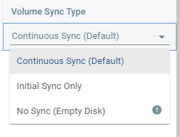 - Continuous Sync (Default) – this will be the most popular options as it means all data on the disk will be continuously replicated